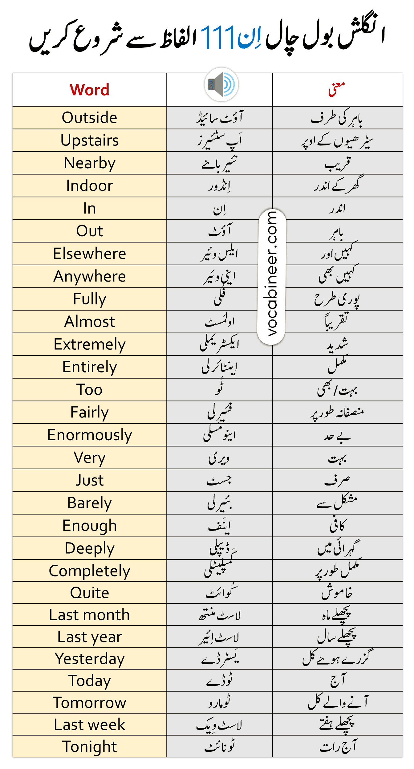 Outside | آؤٹ سائیڈ | باہر کی طرف |
