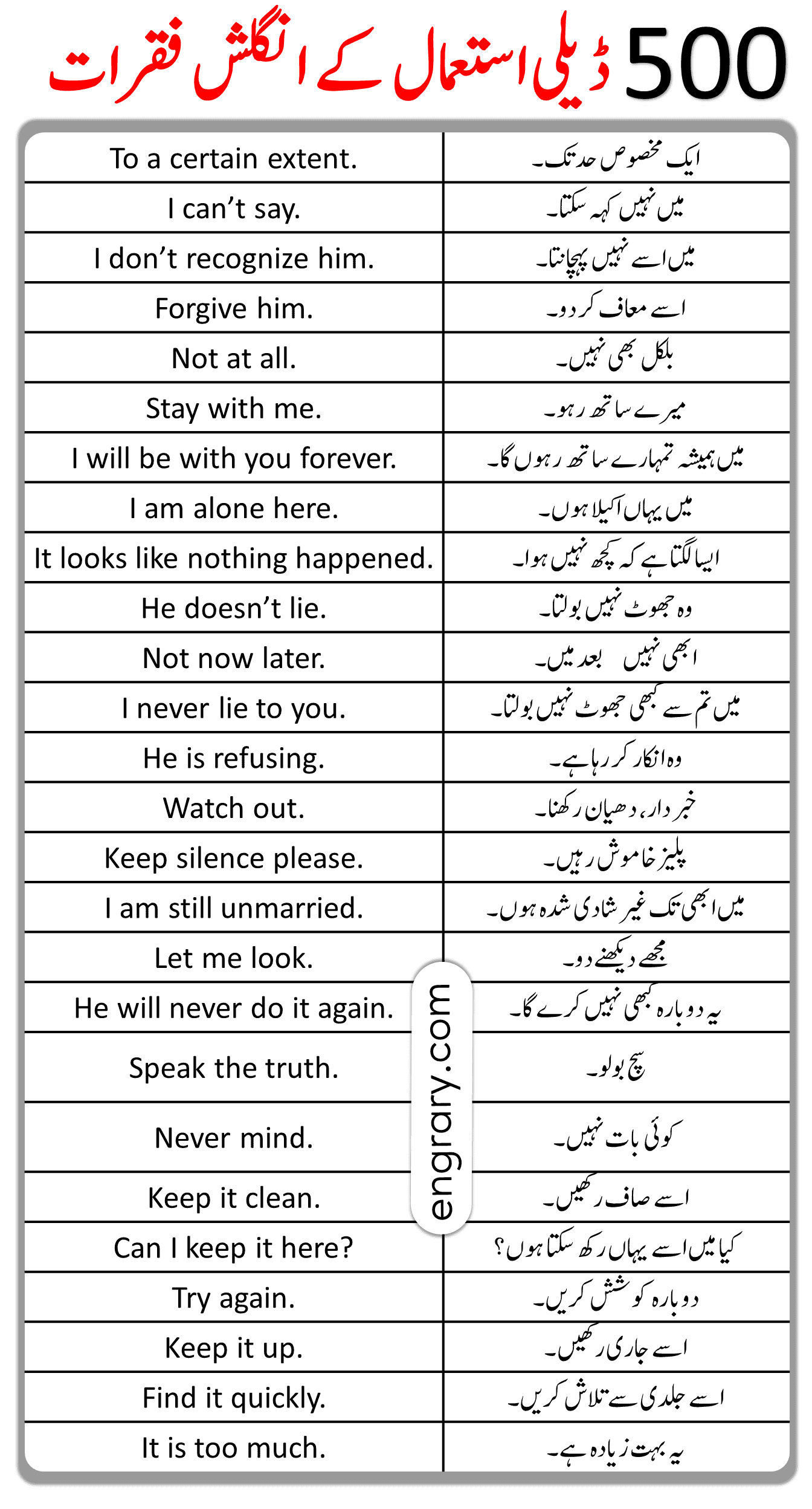 500 Daily Use English Sentences in Urdu Translation with PDF.